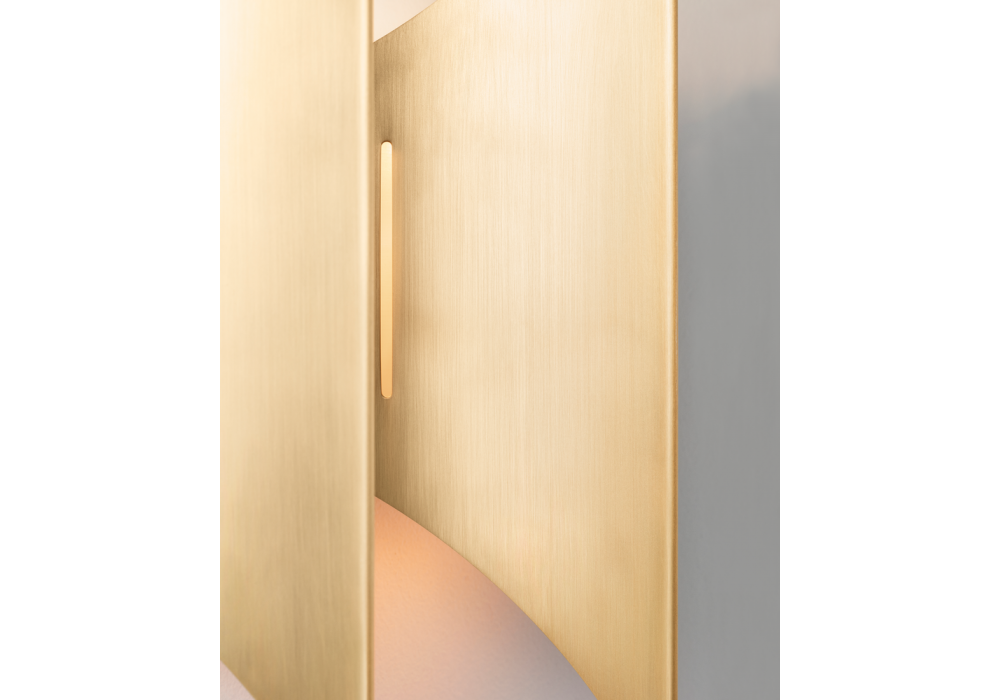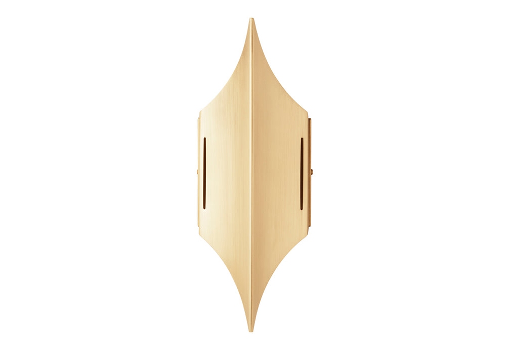 Gothic designed by Bent Karlby for Lyfa is a wall lamp made from a solid brass plate with vertical lines that is bent in the center to create its shape. Available in different sizes.