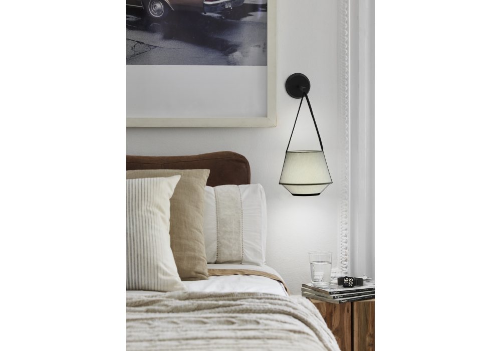 Carrie designed by Jette Scheib for Forestier is a wall lamp made of velvet and cotton with a textile cord. Available in different finishes.