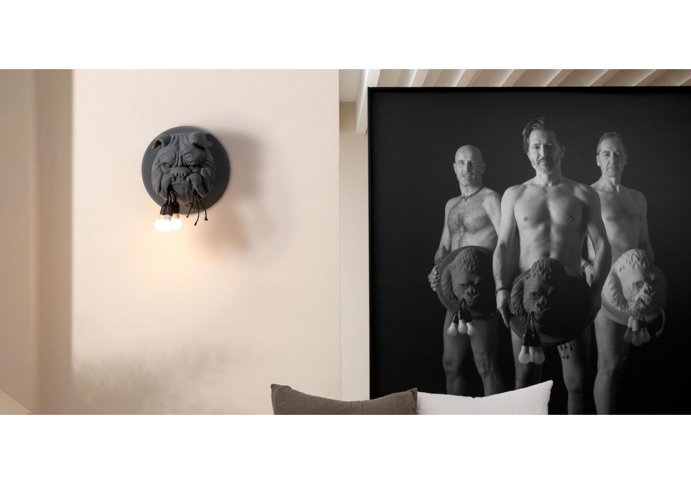 Amsterdam designed by Matteo Ugolini for Karman is a ceramic wall lamp available in 2 colors matt white or matt grey. Light bulb not included. Internal use.