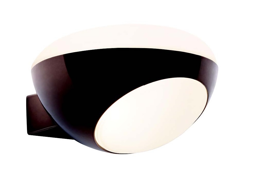 Tua designed by Behurt for Kundalini is a wall lamp with metal body with black tin finish and etched glass diffusers.