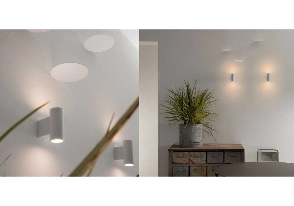 Movida designed by Matteo Ugolini for Karman is a wall lamp in matt white or matt black aluminium. Suitable for both indoors and outdoors.