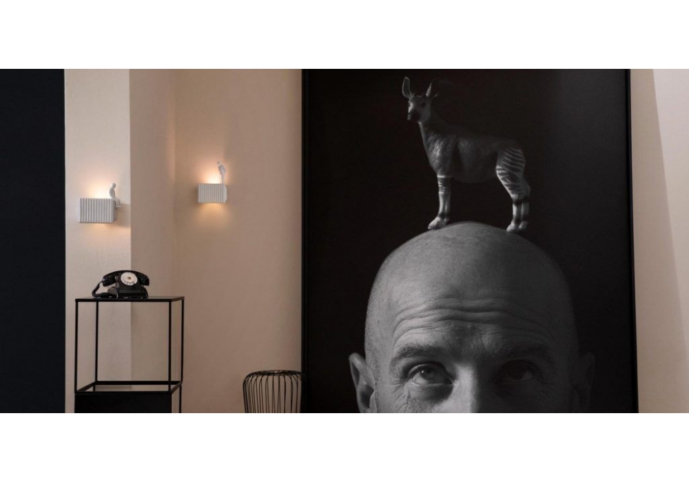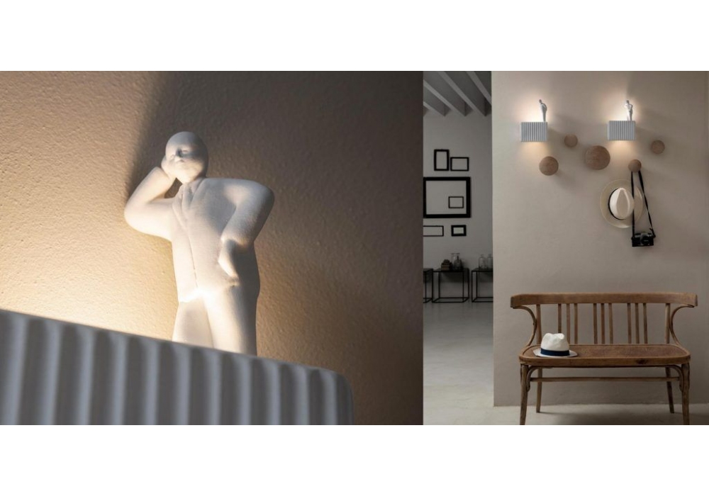 Umarell designed by Giorgio Biscaro is a wall lamp in matt white ceramic with optional accessories in different models. Internal use.