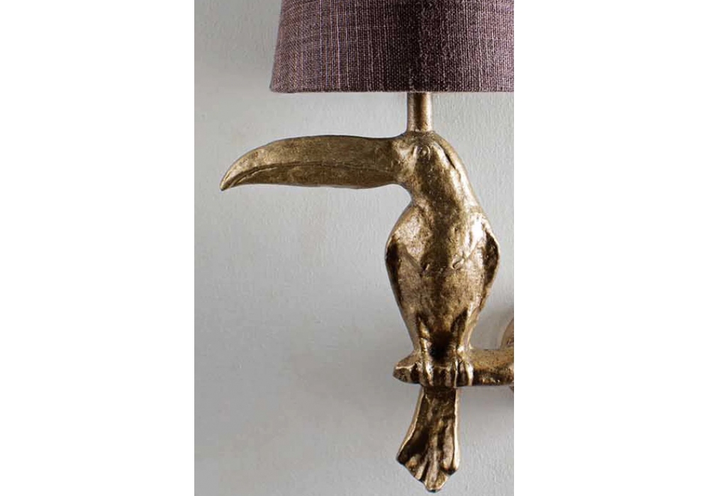 Toucan produced and designed by Porta Romana is a wall lamp with supporting structure in Jesmonite and painted brass. The lampshade is circular in shape in fabric and screens a light source with an E14 socket of the LED type. Toucan is available in both right and left versions and in different finishes.