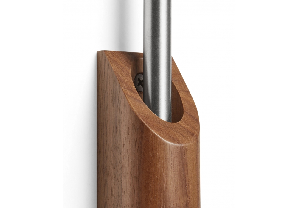 Nelson Ball designed by George Nelson for Hay is a wall lamp with lampshade in polymeric fabric, frame in painted and brushed metal and upper and lower ring in nickel. A walnut wall mount and steel arm, with a swivel hinge. Insulating cable in white PVC.