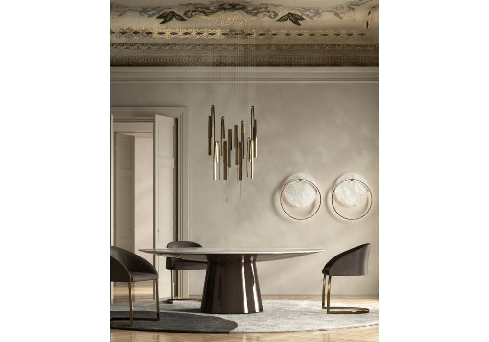 Myring designed by Adele Martelli for Emmemobili is a wall lamp made up of two circles. The ring is made of brass, while the disc can be made of wood, brass or marble. Lighting with LED strips. Dimmable version available on request and with a surcharge.