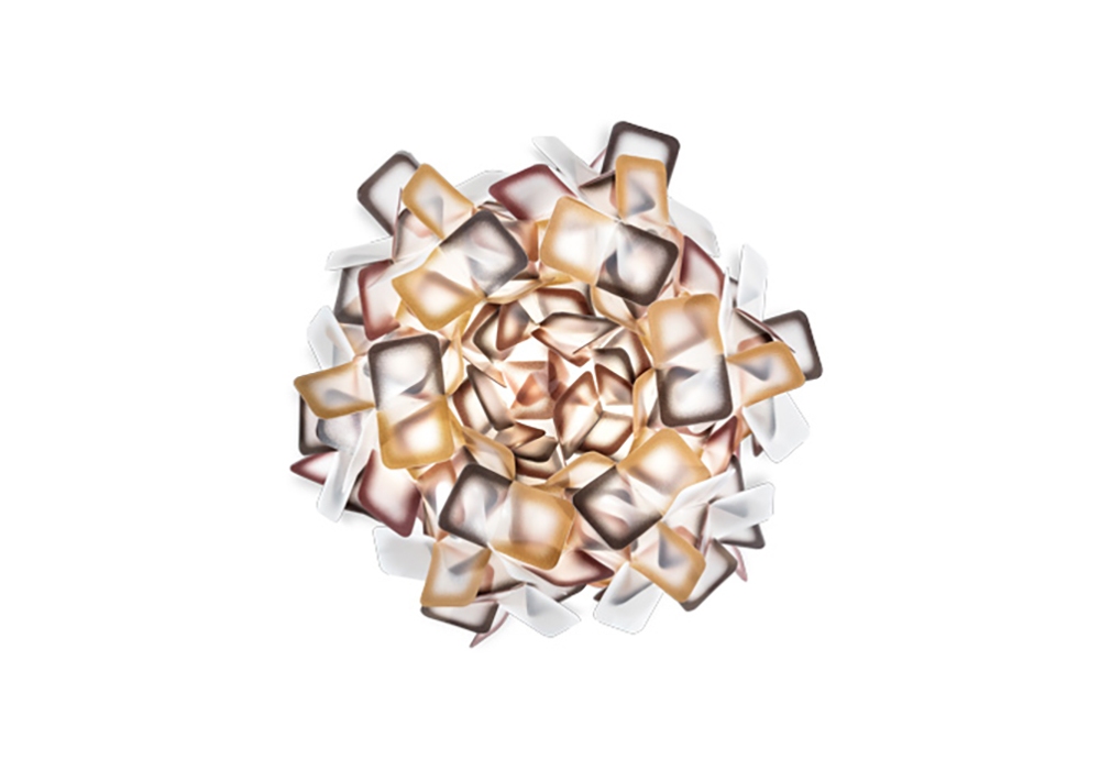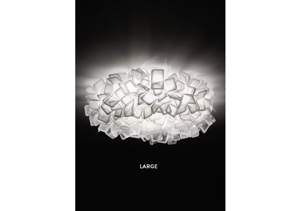 Clizia Small designed by Adriano Rachele for Slamp is a wall or ceiling lamp with an abstract shape made in Opalflex®; Cristalflex® or Lentiflex®. The light source used is of the dimmable filament LED type. Clizia Small is available in three different sizes.