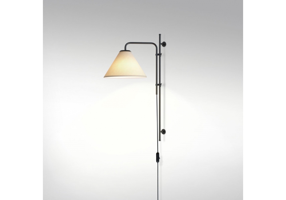 Funiculì A Fabric designed by Lluís Porqueras for Marset is a wall lamp made of black painted iron and lampshade in white or sand polyester.