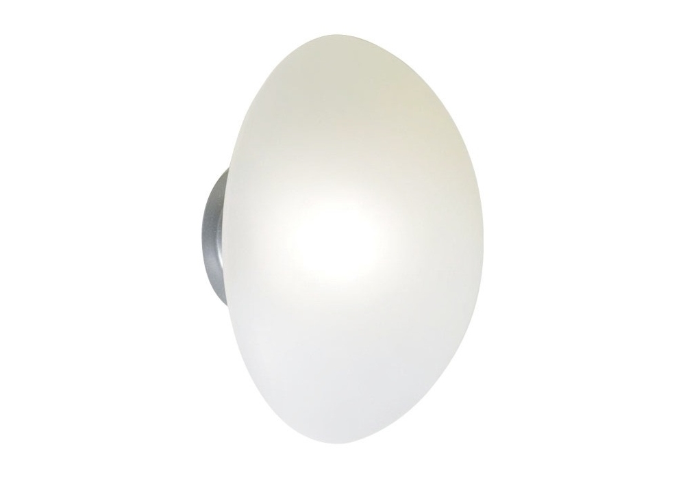 Sillabone designed by Piero Castiglioni for Fontana Arte is a Ceiling / Wall lamp, with a white technopolymer frame, and has a high thermal resistance. The diffuser is in heat-resistant sandblasted glass.