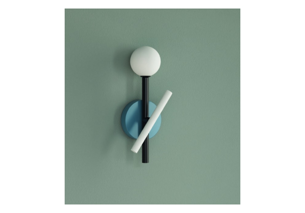 Tube and Globe designed by Atelier Areti is a wall lamp made of painted metal, available in different finishes. Upon request, it is also possible to customize the colors of the tube and rosette.