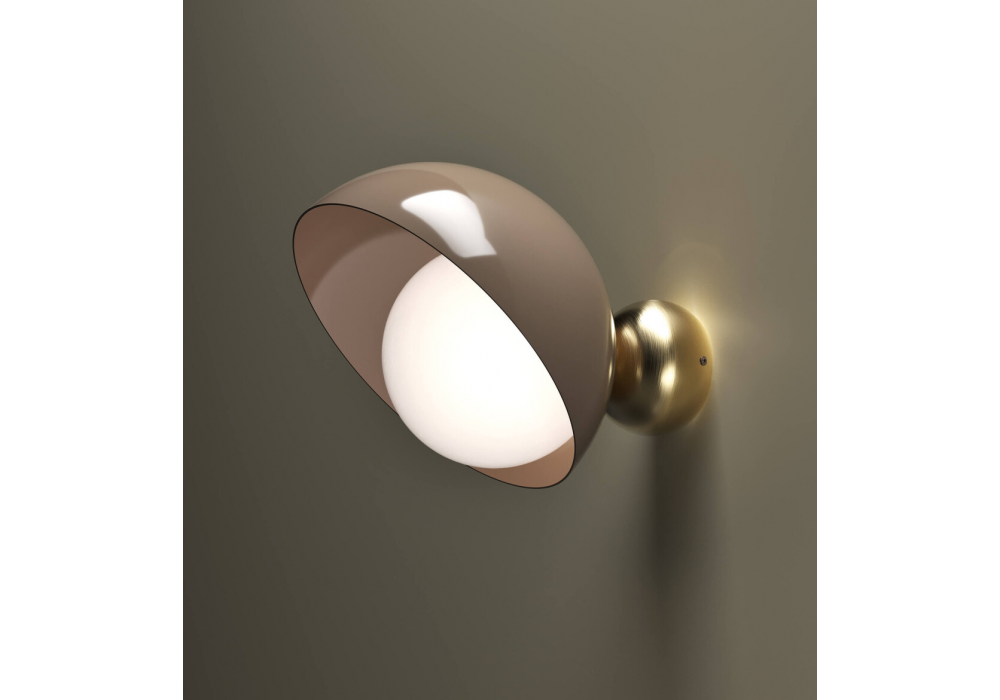 Aurora designed by Virginia Cei for Italamp is a LED wall lamp made of painted metal and central sphere in brushed light gold finish. The diffuser is made of white glass.