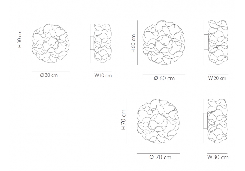 | Dimensions | Ø 30 x H 10 cm; Ø 60 x H 20 cm; Ø 70 x H 30 cm. |