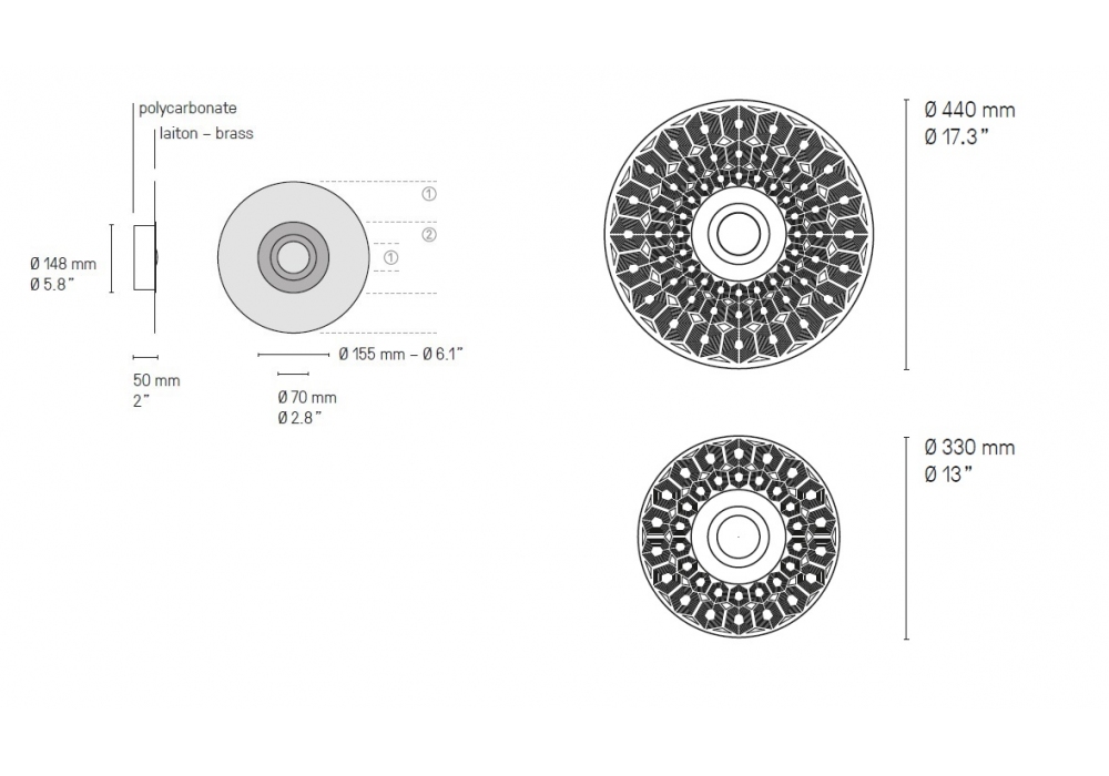 | Dimensions | Ø 33 cm; Ø 44 cm. |