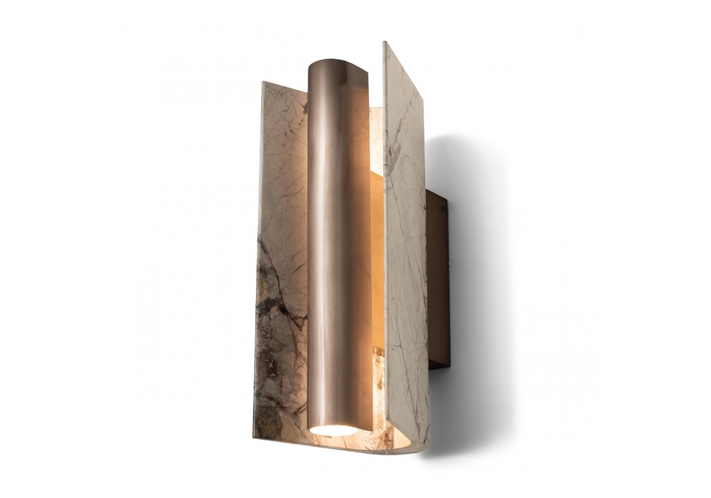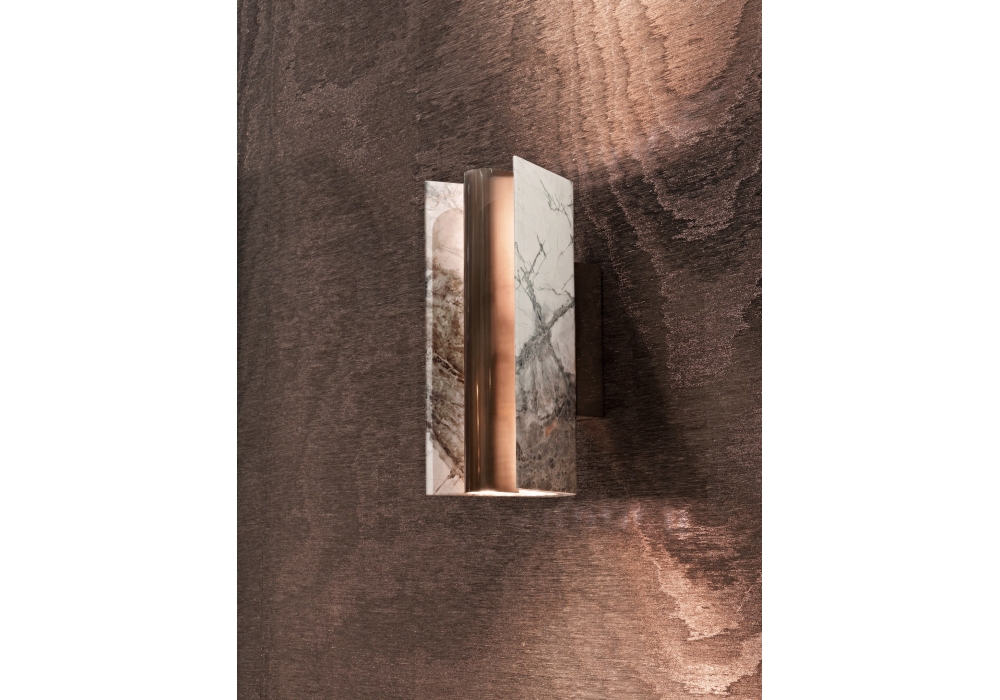 Wave designed by Alessandro La Spada for Visionnaire is a wall lamp with load-bearing structure and central body in stainless steel and solid marble with prismatic shape and V-section. The diffuser is in stainless steel and adopts a LED light source powered by a cable with on/off switch in plastic material. Wave is available in different finishes.