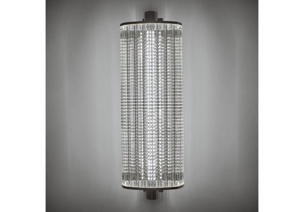 ex-Tr designed by Franco Raggi for Firmamento Milano is a wall lamp providing diffused light made of chromed steel and transparent or satin extruded borosilicate glass.