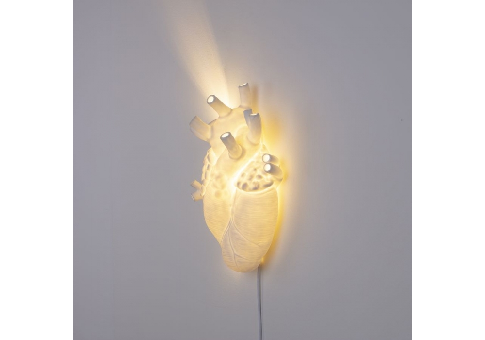 Heart designed by Marcantonio for Seletti is a wall lamp in very fine white porcelain which represents the anatomy of a human heart. The light source adopted is LED type powered by a plastic cable.