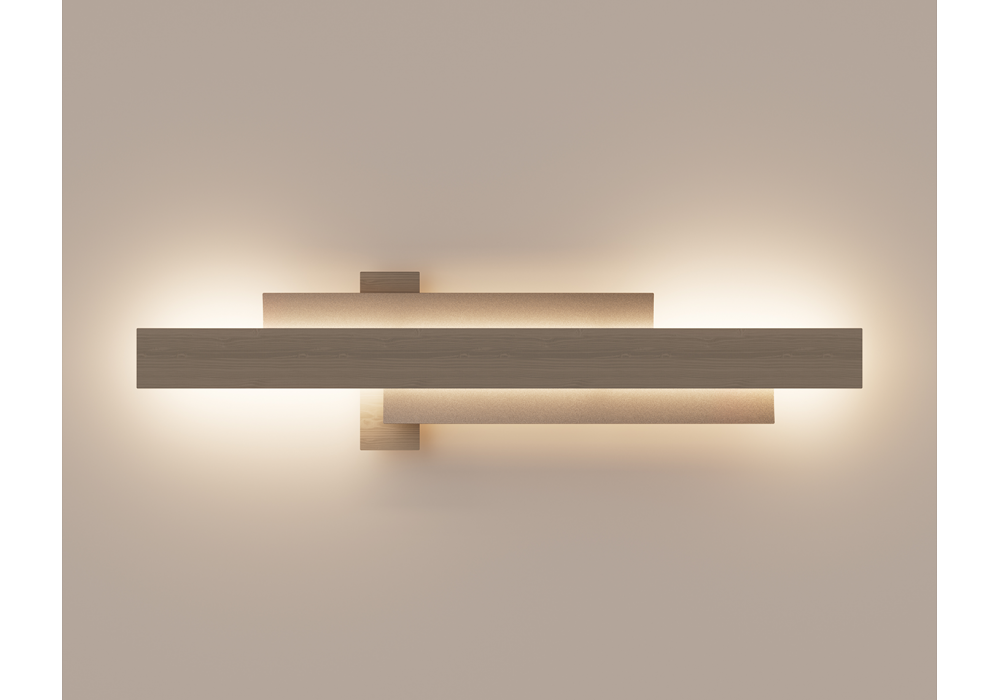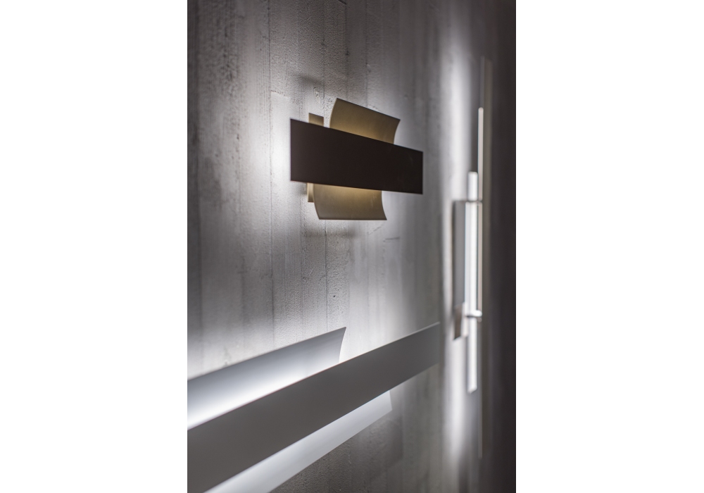 Fields designed by Garcia Cumini for Foscarini is a wall lamp composed of metal plates in which two curved surfaces have been introduced to improve the diffusion of light. The presence of LED technology improves energy efficiency and allows for a reduction in the protrusion from the wall.