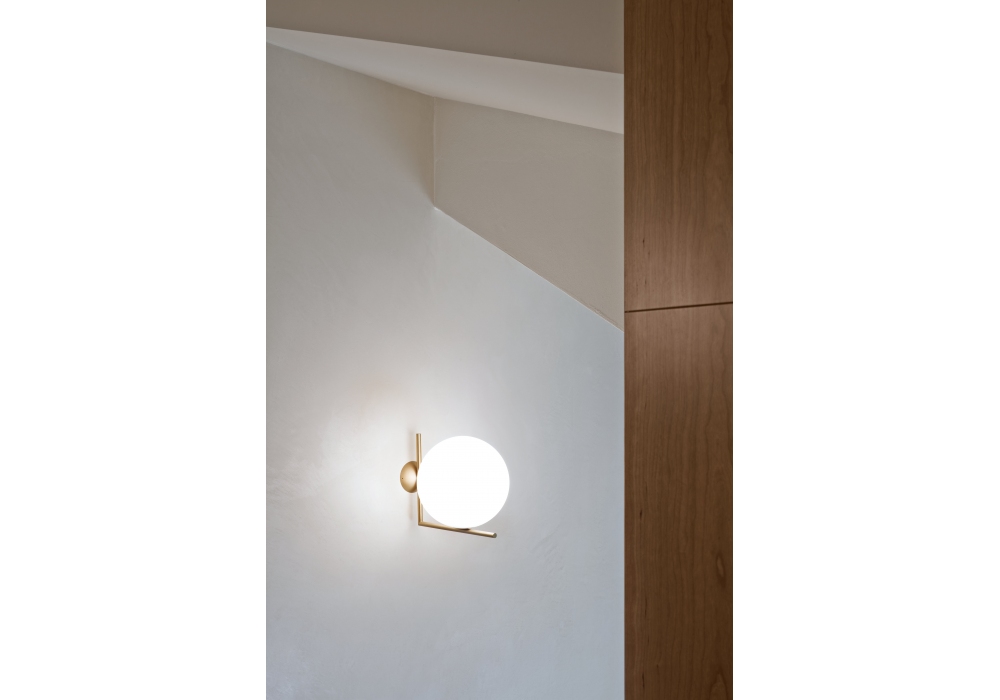 IC C/W2 designed by Michael Anastassiades for Flos is a wall/ceiling lamp providing diffused light. Frame in brass, brushed and transparent painted or chromed steel. Opal diffuser in blown glass. Remotely adjustable (dimmer not included). Bulb not included.