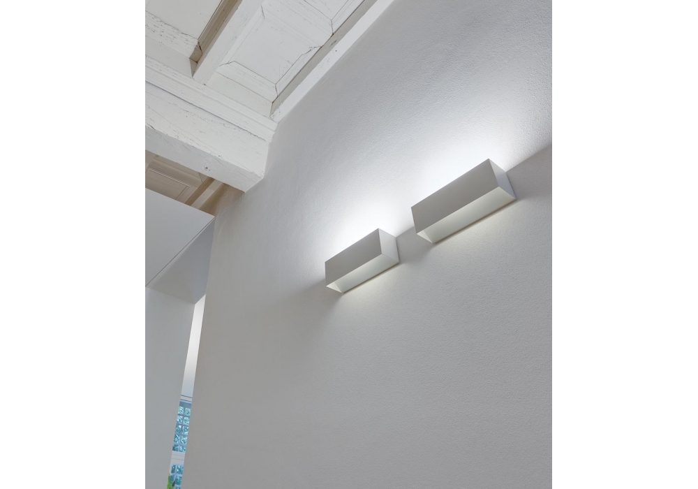 More signed and produced by Davide Groppi is a quadrangular wall lamp entirely made of matt white painted metal. The light source adopted is with an R7s LED type coupling.