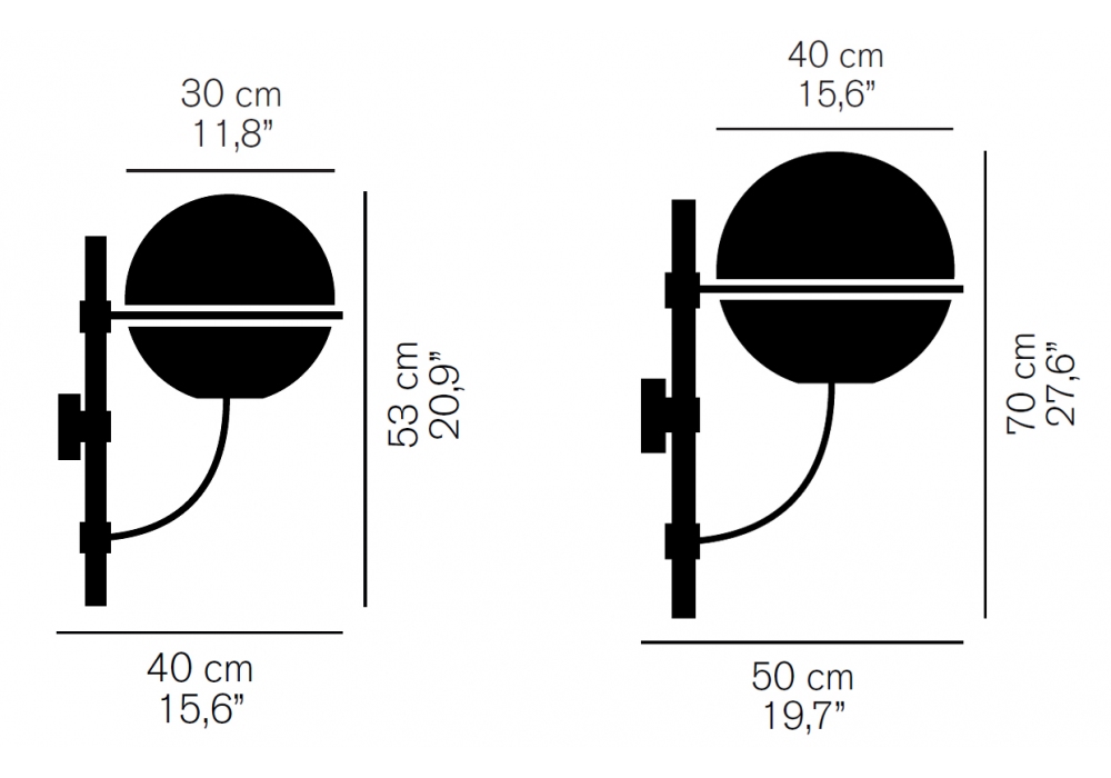 | Dimensions | Ø30 x 40 x H 53 cm; Ø40 x 50 x H 70 cm. |