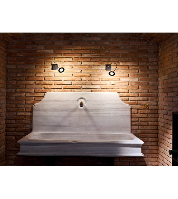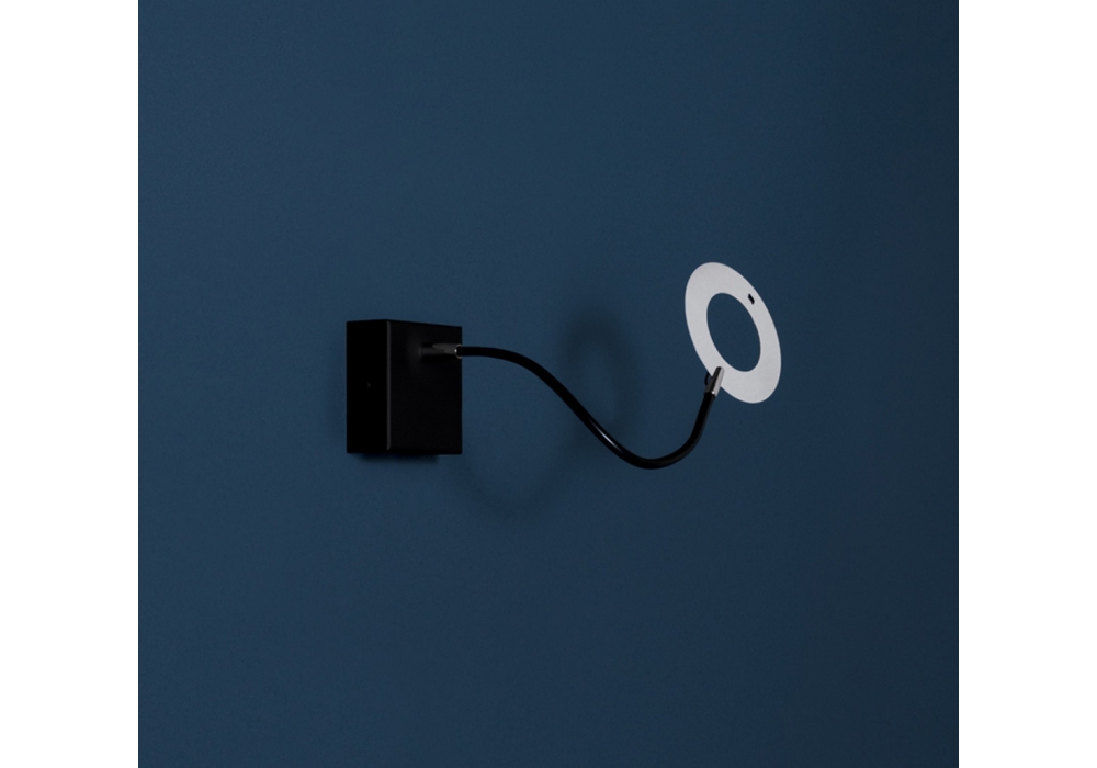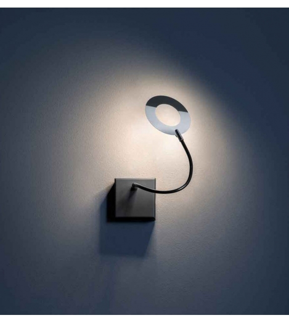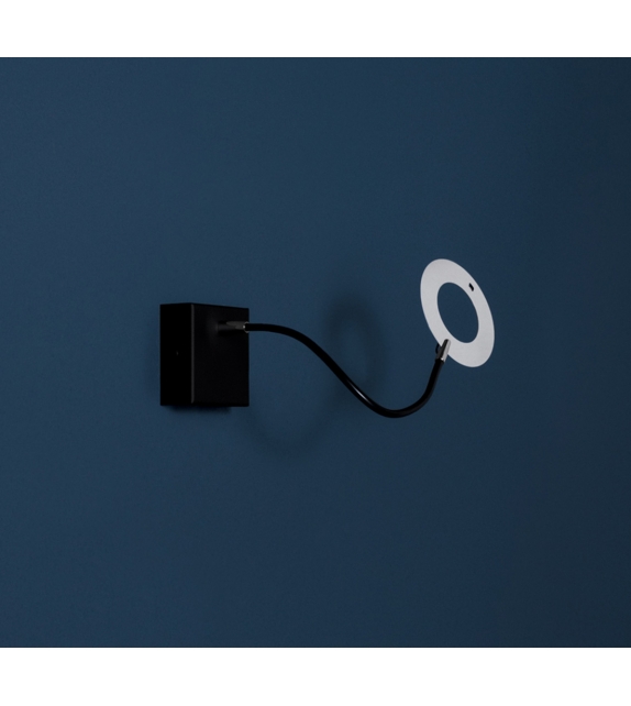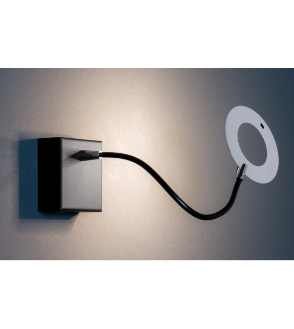 Giulietta W designed by Enzo Catellani for Catellani & Smith is a wall lamp with black base and flex, black or nickel diffuser ring, nickel details. The lamp is LED with sensor dimmer (touch-less).
