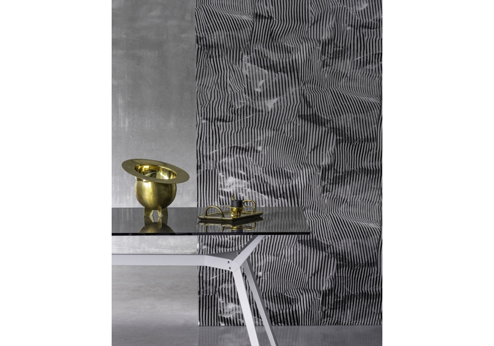 Wrinkled Lines designed by Diesel Living for Wall & Decò is a digitally printed non-woven wallpaper. Coated non-woven fabric based on cellulose fibers and polyester fibers, water-based inks and organic pigments. Available in different finishes.