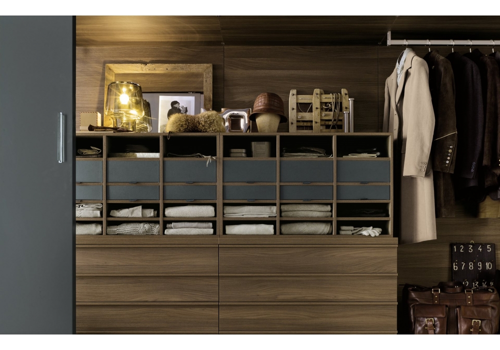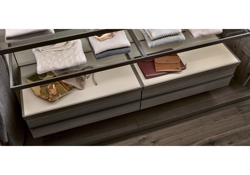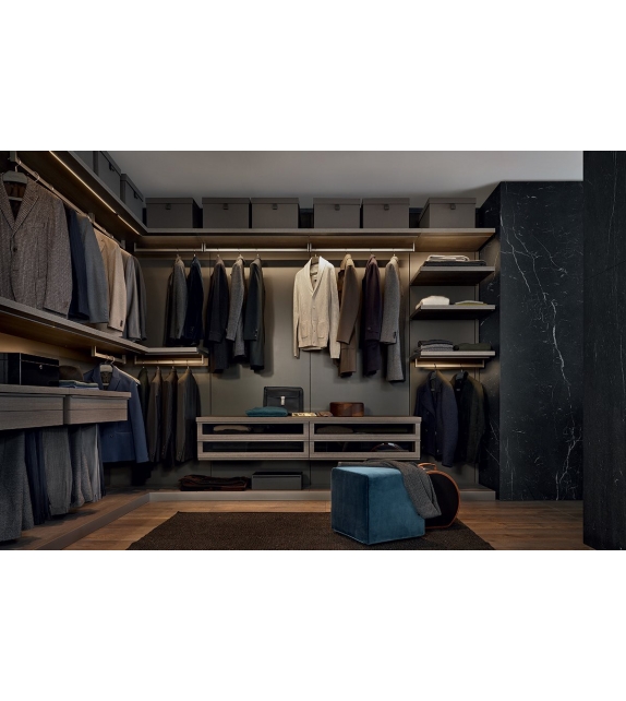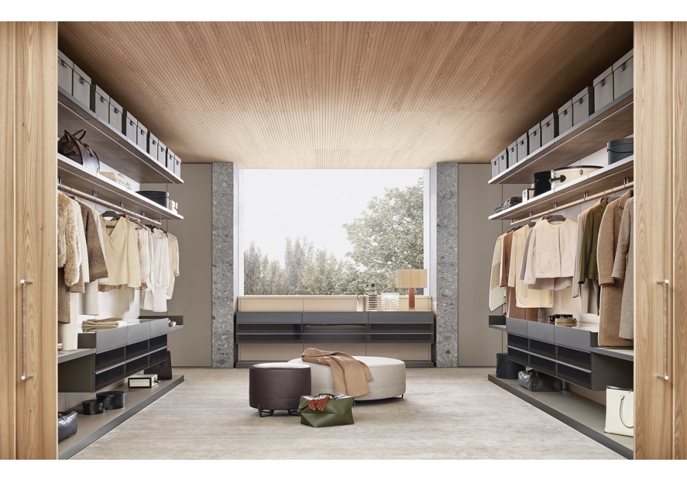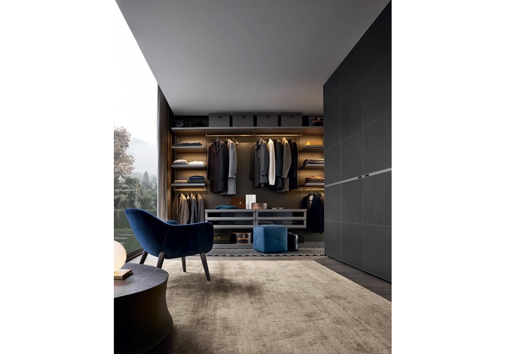 Ubik designed by R&D Poliform is a walk-in closet that thanks to a series of containers and accessories, functionality and personal style coincide.