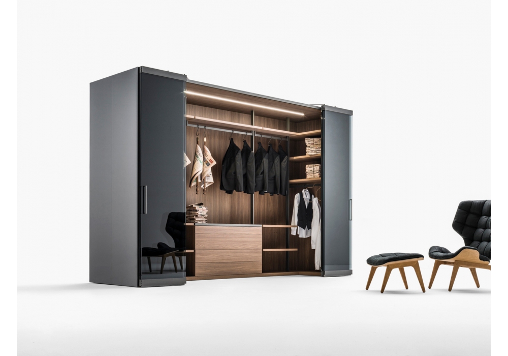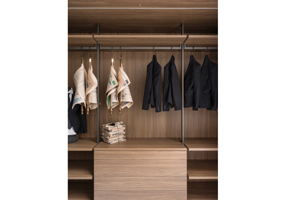 Camerino designed by R&D Caccaro for Caccaro is a walk-in closet, the shelves, hangers, drawers can be arranged in different solutions. All the modules can be combined and integrated with the other elements of the Freedhome® System to create your own customized walk-in closet. Available in different finishes and dimensions.