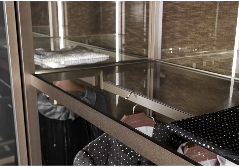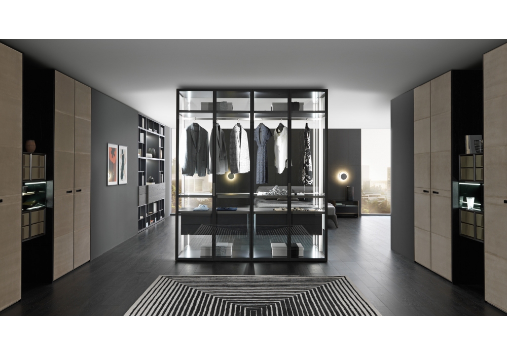 Palo Alto I-Box designed by Gianni Borgonovo for MisuraEmme is a walk-in closet characterized by an exclusive hinge that allows the installation of the door both in the classic wooden shoulder and in the frame shoulder, giving life to infinite compositional possibilities thanks to the integration between wardrobe and walk-in closet The sleeping area therefore becomes the place to give life to new combinations, not only in terms of design, but also materials, granted by the wide variety of fine finishes - ranging from glass to technomarble, from essences to metal - enhanced by the sophisticated LED lighting incorporated in the frame which gives a delicate and classy atmosphere.
