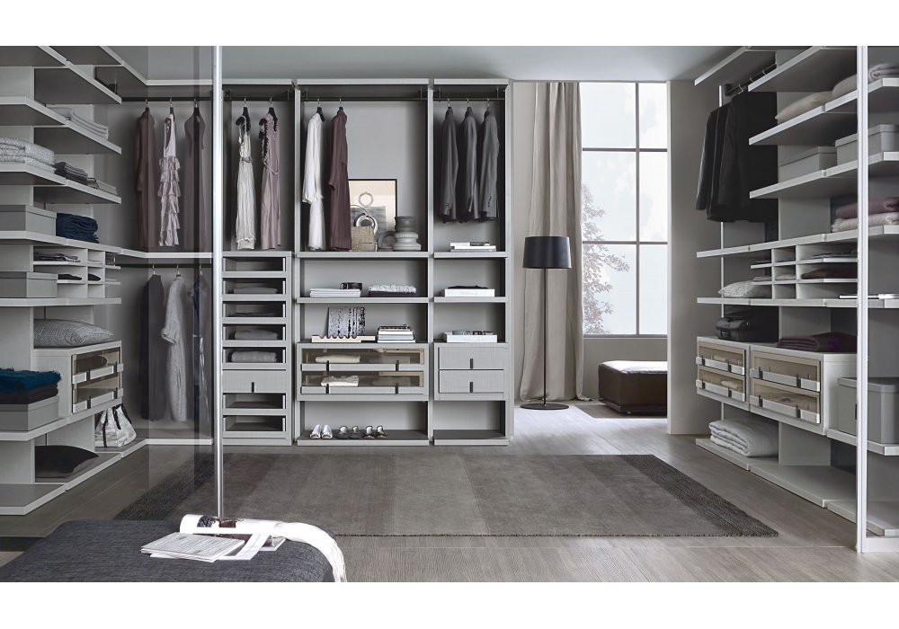 Millimetrica designed by Ennio Arosio for MisuraEmme is a walk-in closet. The limitless modularity allows complete customization with various accessories and complements, while the finishes and materials chosen give the support lightness and refinement. The sliding doors in reflective transparent glass expand the space in which the accessory is placed, creating a welcoming and spacious environment with geometries that can be adapted to the architectural space. The Millimetrica walk-in closet offers a wide range of solutions to satisfy every need.
