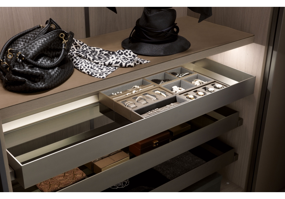 First designed by MisuraEmme is a wardrobe that takes up the evocative transparency of glass, the play of reflections of mirrors, the light colors of wardrobes that multiply spaces, declining them to infinity.