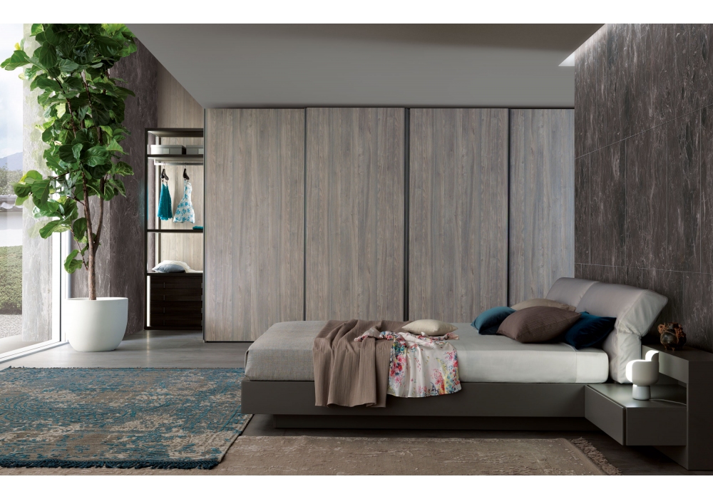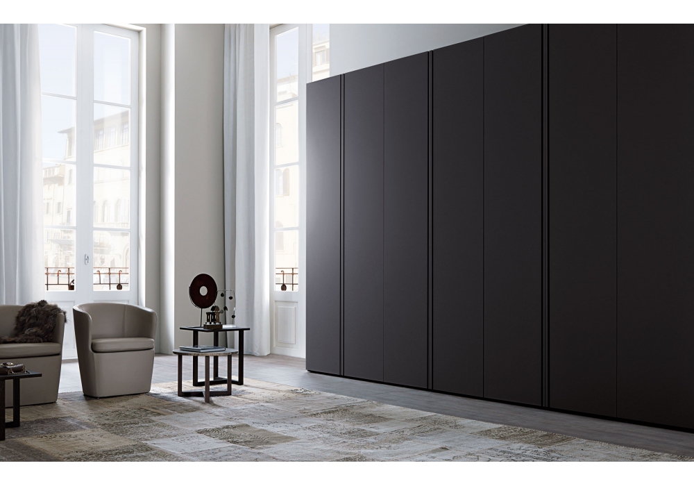 Tecno designed by MisuraEmme is a wardrobe with hinged, sliding or coplanar doors made with particle board panels covered with melamine facing. Matching ABS edge.