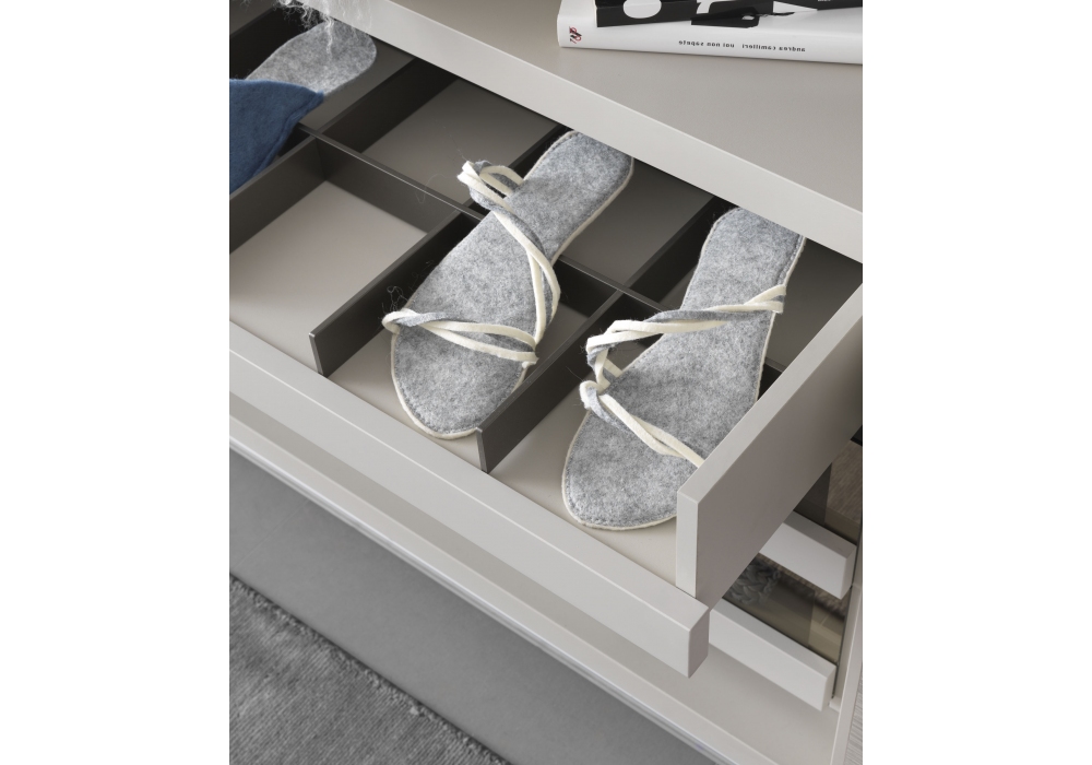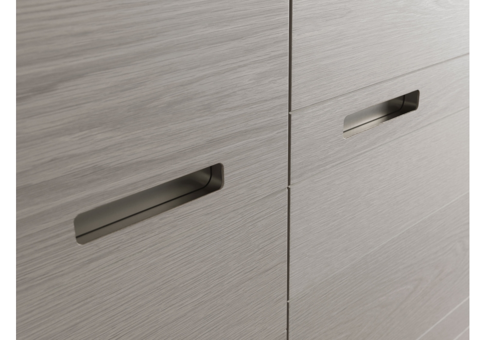 Lexington designed by Mauro Lipparini for MisuraEmme is a wardrobe with sliding/coplanar door, divided into 2 parts, made of MDF covered with matt lacquered melamine facing, or covered with sliced wood.