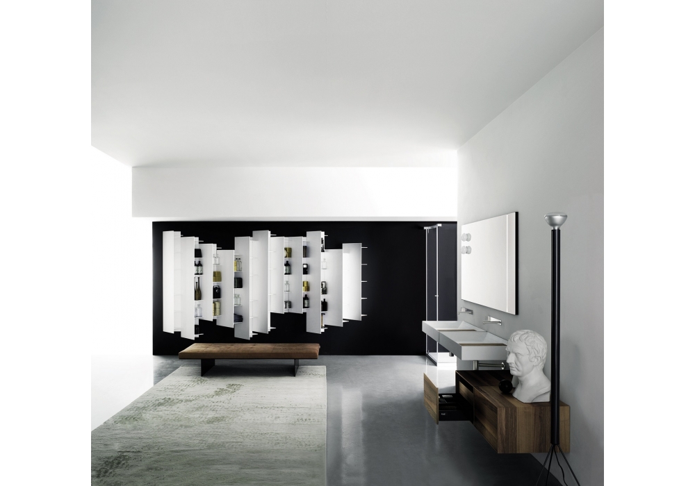 A45 designed byVictor Vasilev for Boffi is a over countertop washbasin without overflow hole. It's made of matt white Cristalplant®.