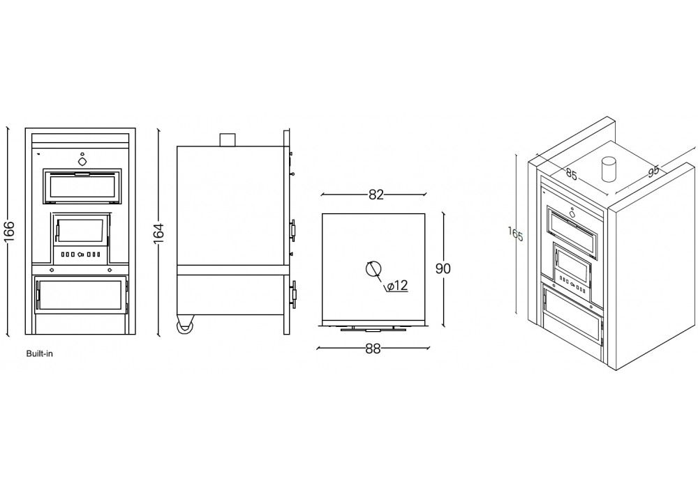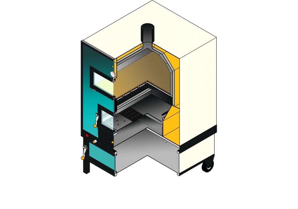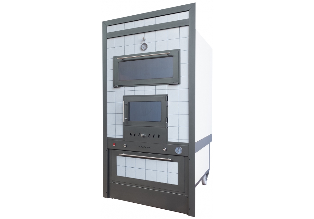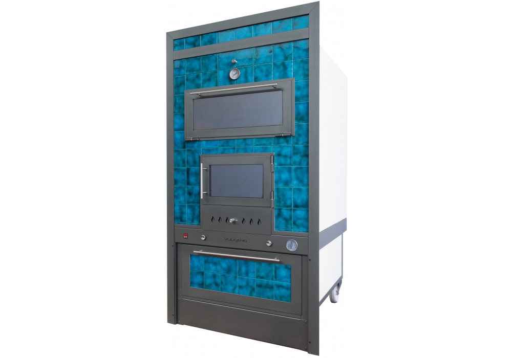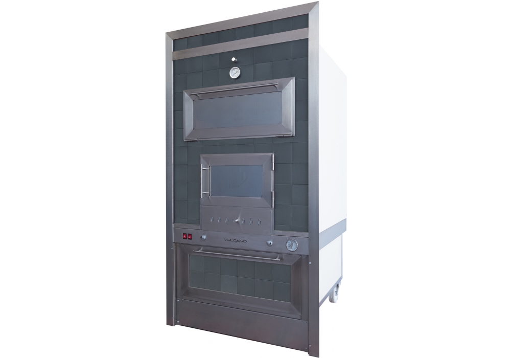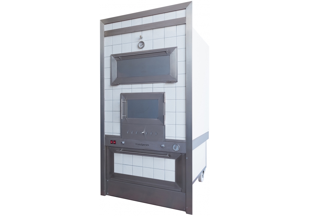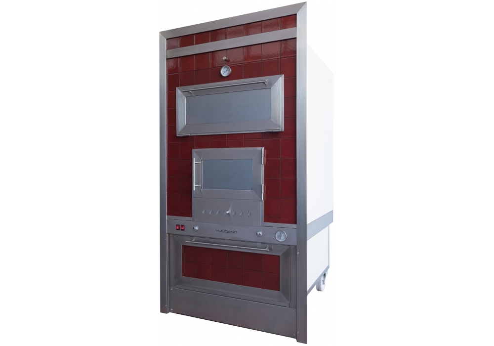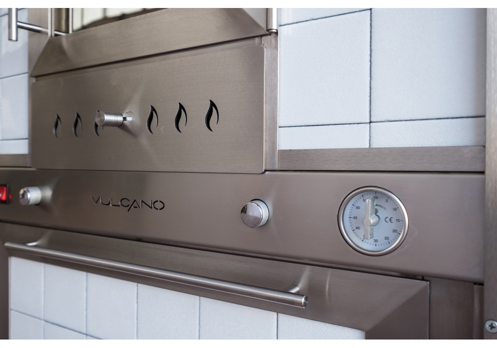 The cooking chamber is in stainless steel AISI 304 on 2 levels, equipped with ventilation and illumination. Handles in brushed stainless steel with wooden details and snap closure. Sliding ash drawer with adjustable air intake. Food heater with leaf door. Catania is a coating of the Sicily Collection.
