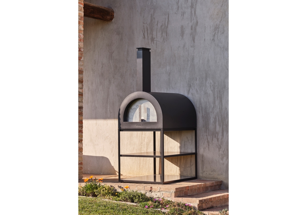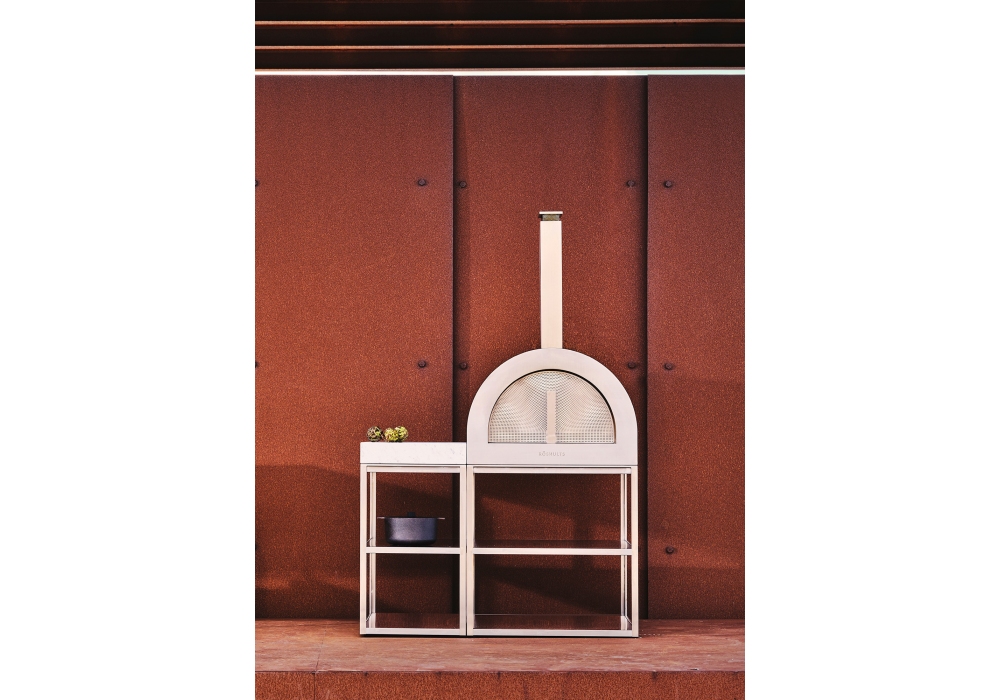 Wood Oven designed by Broberg & Ridderstråle for Röshults is a wood-burning oven with structure in stainless steel and removable lower shelf in teak. On request it is possible to add side support structures.