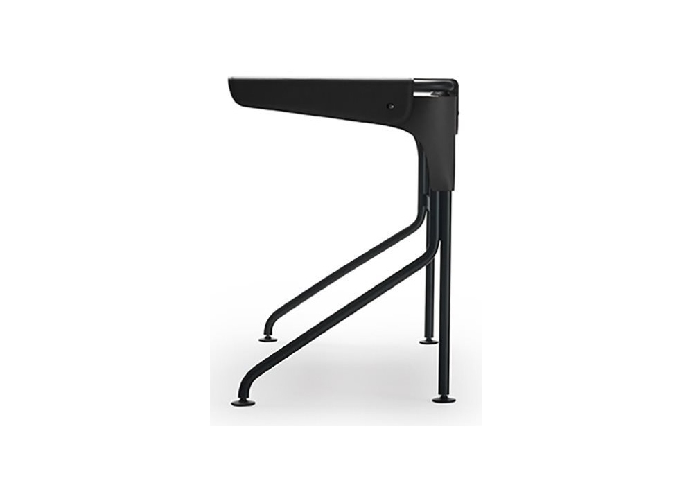 2740 Tucano designed by Monica Förster for Zanotta is a writing desk with top covered in pigmented leather 90 and structure in matt black painted steel.