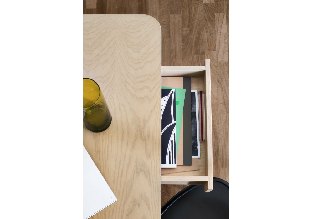 Allegory Desk designed by Gamfratesi for Gebrüder Thonet Vienna is a writing desk with structure in curved beech and top veneered in varnished ash. Circular decorative element in Vienna straw. Available in the version with or without drawer.