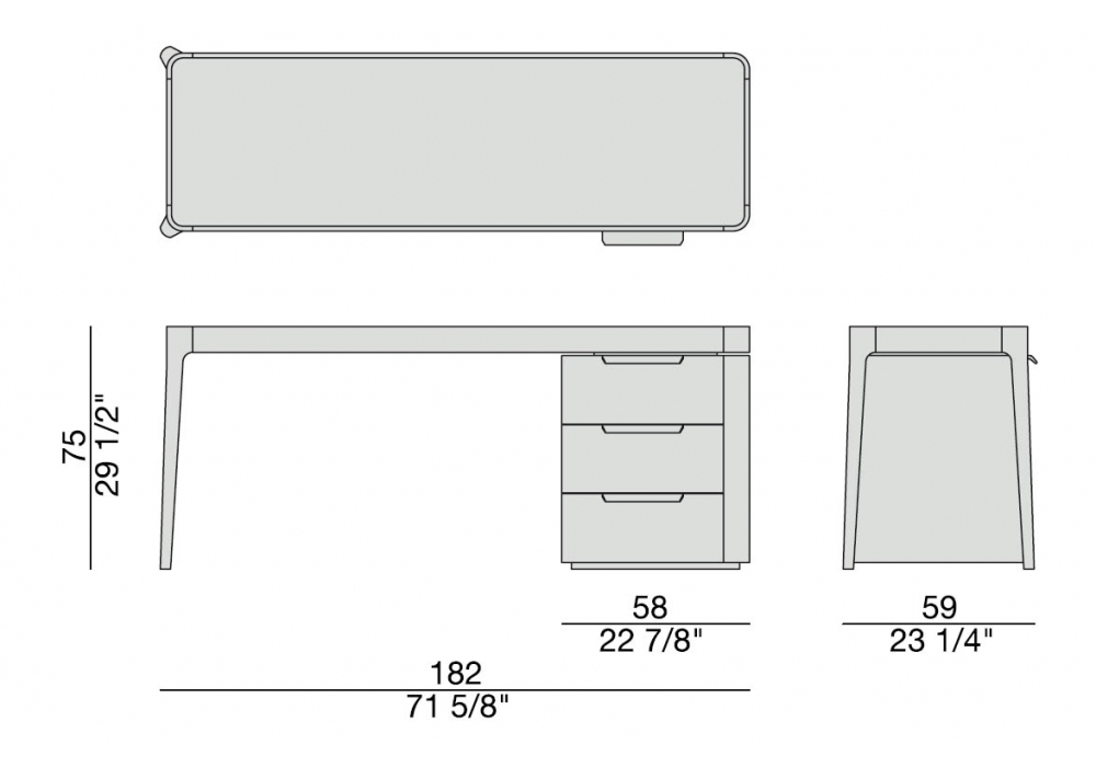 Afrodite designed by C. Ballabio for Porada is a writing desk with structure and side drawers in solid canaletta walnut available in different finishes. Top in marble, wood, crystal or covered in Cuoietto leather. Available with drawers on the right or on the left. Mirror available for wooden or cuoietto top only.