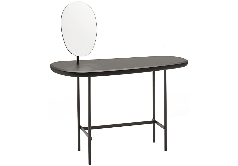 Pebble Vanity designed by Lanzavecchia & Wai for Living Divani is a writing desk with mirror and top available in different finishes. Structure made of steel, gunpowder grey painted. Also available in 2 types: with or without drawers.
