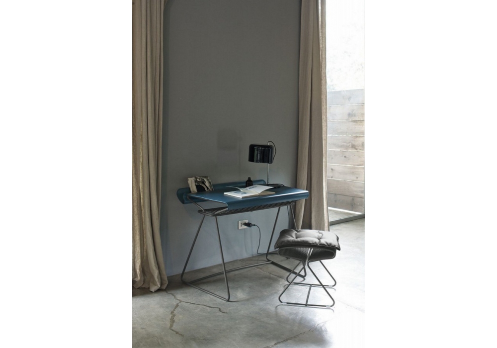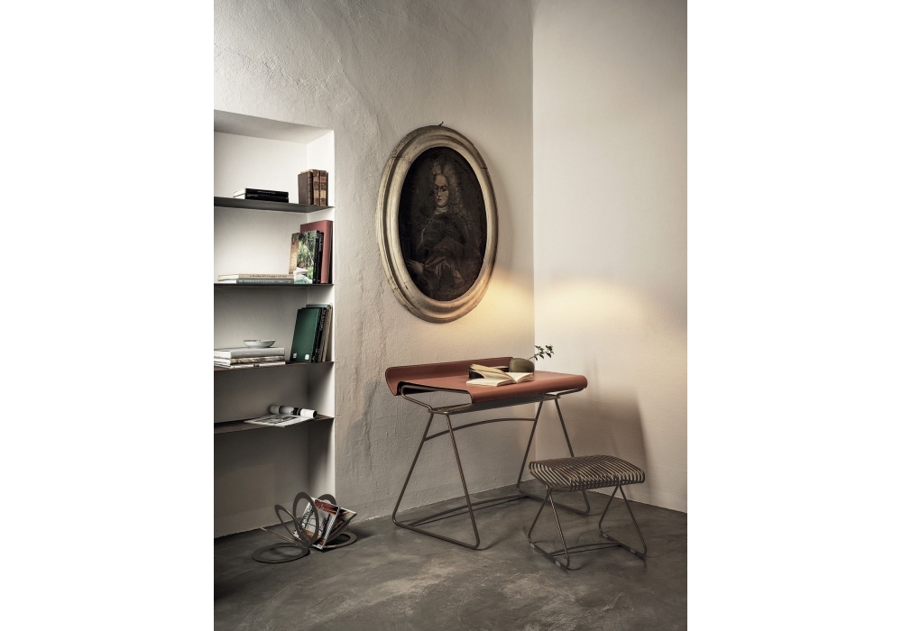 Taylor designed by Pocci & Dondoli for Bontempi is a desk made of lacquered steel structure and hide leather top. The desk is available in different finishes.