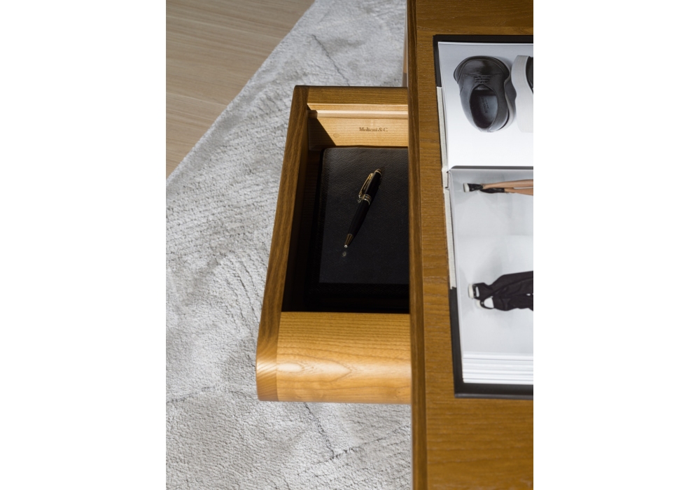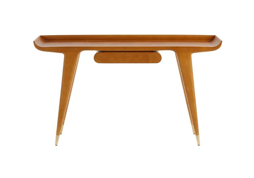 D.847.1 designed by Gio Ponti for Molteni&C is a writing desk made of solid honey-stained ash wood and foot in satin brass.