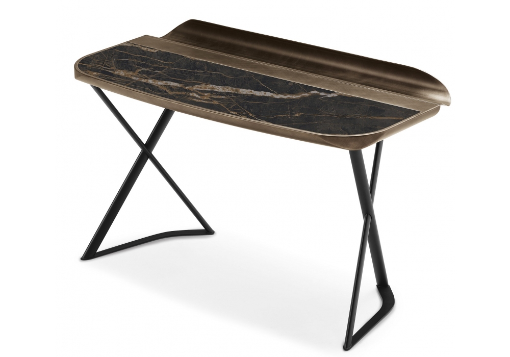 Cocoon Keramik designed by Paolo Cattelan for Cattelan Italia is a desk made with lacquered steel base. Top in ceramic Marmi in several colour with Brushed Bronze or Brushed Grey lacquered and rounded lower profile and grooved tray in Brushed Bronze or Brushed Grey lacquered steel.