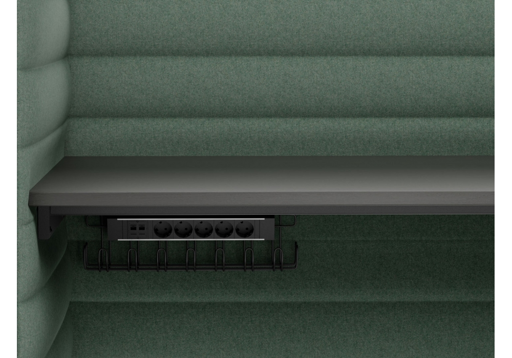 Alcove Plus Desk designed by Ronan & Erwan Bouroullec for Vitra is a desk made with side and rear panels in biological fiber and metal structure, connected with hinges. Top in MDF, melamine or oak. Removable fabric upholstery. On request it is possible to add other panels and accessories that complete the desk.