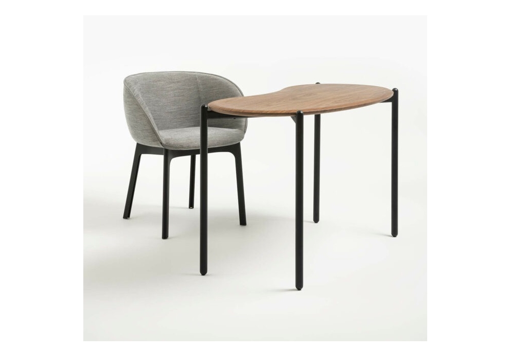 Lunat designed by Patricia Urquiola for Kartell is a desk made with curved wood top and black painted steel structure.