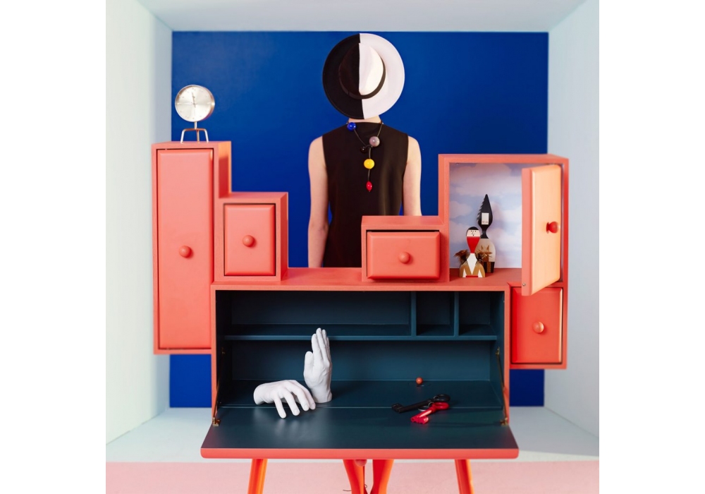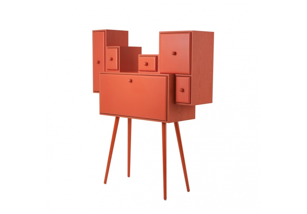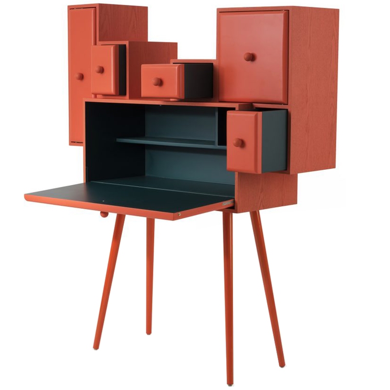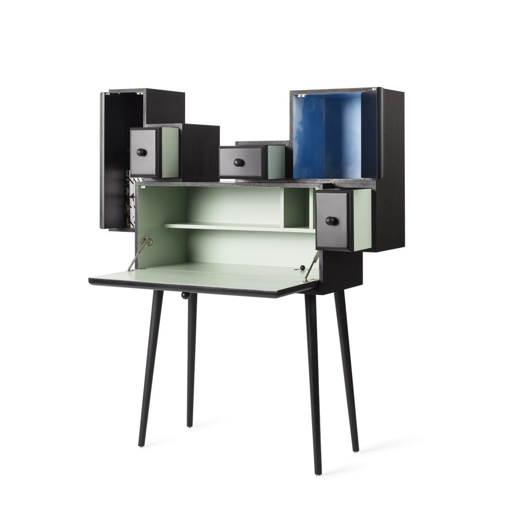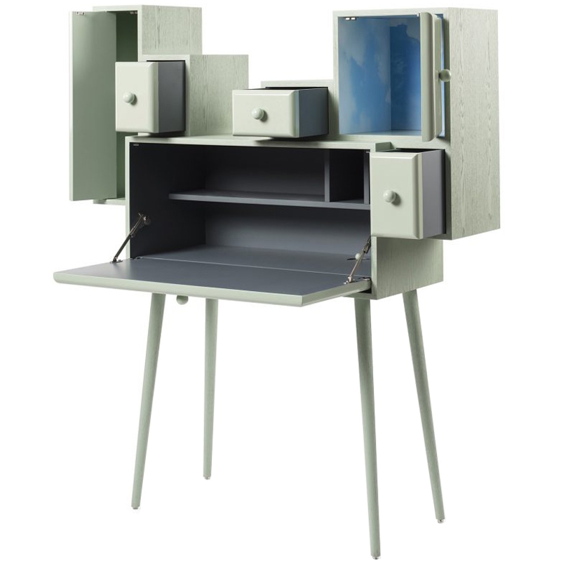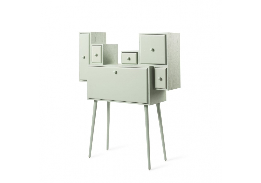 Confidence of a Cloud designed by Thomas Dariel for Maison Dada is a desk made up of several quadrangular elements structured in MDF covered with ash veneer painted in different finishes. Legs in ash veneered metal painted in different colors.