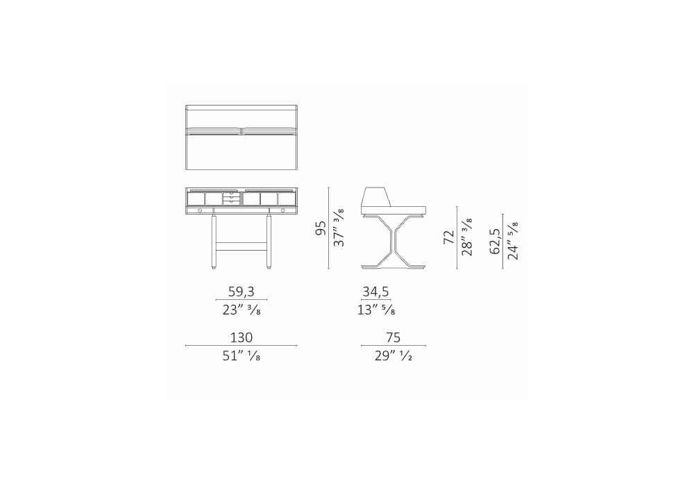 | Dimensions | • 130 x 75 x H 72 cm; • 130 x 75 x H 82 cm; • 130 x 75 x H 95 cm |