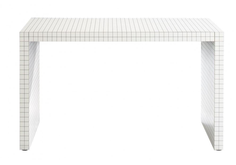 2750 Quaderna designed by Superstudio / Cristiano Toraldo di Francia for Zanotta is a writing desk made with print laminated honeycomb wood structure, white color, with digital checkered print. Retractable pull-out drawer hollowed out in the thickness of the top, drawer compartment in black scratch-resistant embossed painted wood.