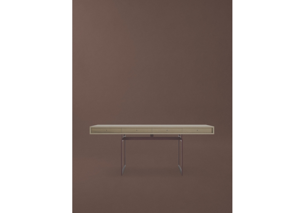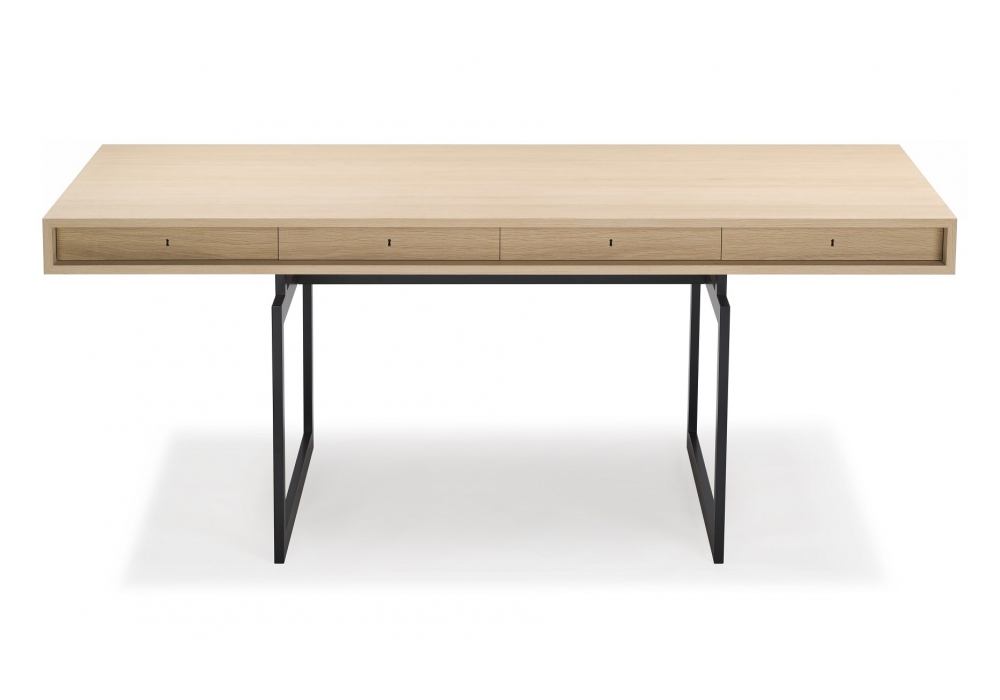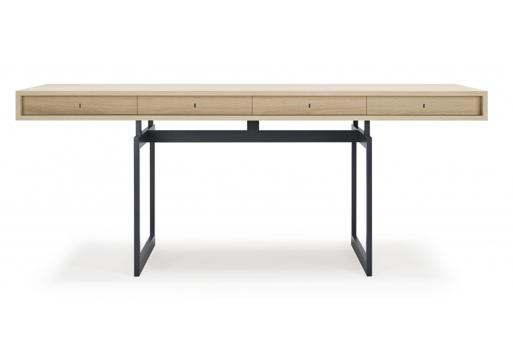 Office Desk designed by Bodil Kjær for Karakter is a desk with structure in powder-coated steel or brushed stainless steel and top in oak or walnut veneer with clear lacquer.