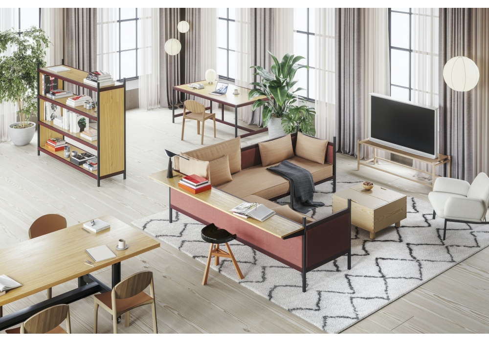 Grid designed by Ronan & Erwan Bouroullec for Established & Sons is a desk made of powder coated steel and with laminate or larch top.