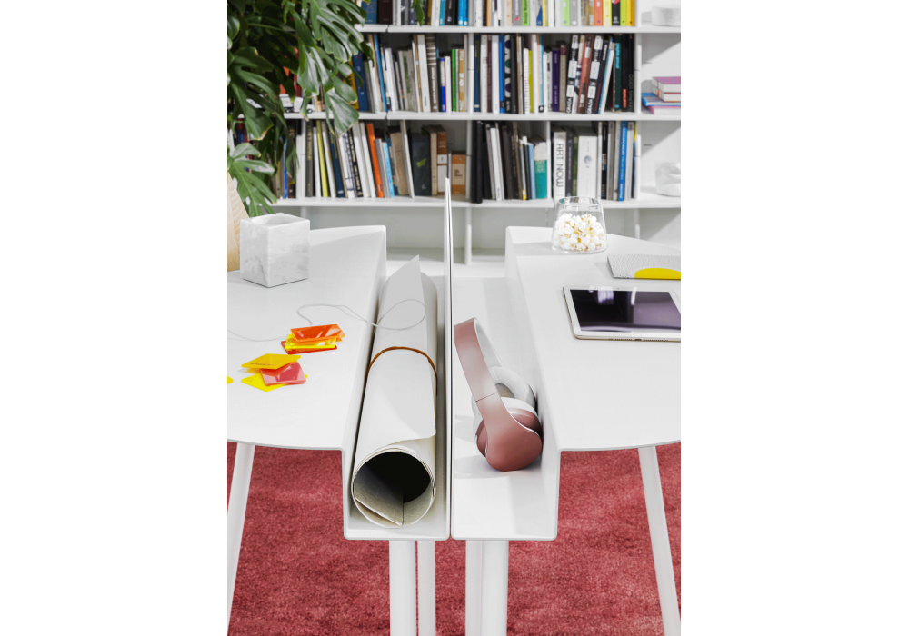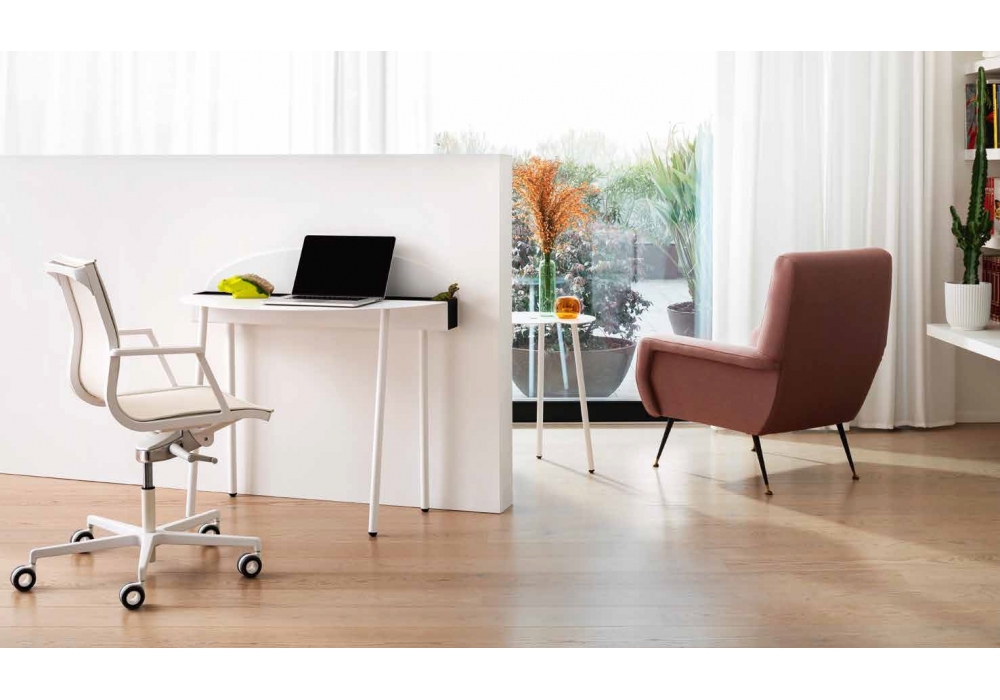 Crono designed by Favaretto and Partners for Luxy is a desk with painted metal structure and laser cut top. It is possible to choose the version with or without electrified cable pass kit. Available in different finishes.